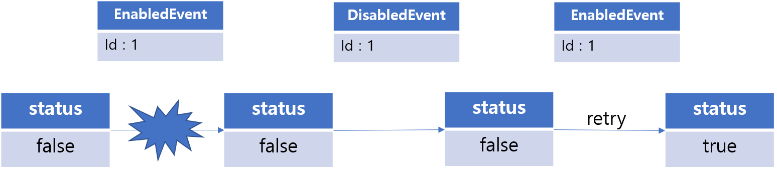 예를 들어서 EnabledEvent, DisabledEvent를 받아서 외부에 그 상태 내역을 업데이트하는 handler가 있다고 가정을 했을 때, EnabledEvent의 처리가 실패해서 상태를 업데이트 못시켰다고 했을때, 그 이벤트에 대한 재처리가 원본 entity가 disable 된 상태 이후에 다시 이루어졌다고 한다면, 원본 entity와의 status가 일치하지 않을 수도 있습니다.